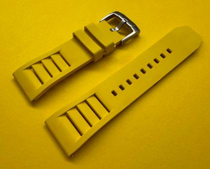 This custom made 12 inch long nylon zulu strap has over 5 inches of sizing holes. The longer length and extra sizing holes make these zulus able to fit a wider range of wrist sizes. They can be cut down for smaller wrists. This desert zulu has black coated stainless steel rings and is marked STEVRAL on the buckle ring.